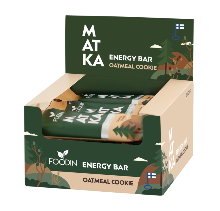 Maalissa saat MATKA Energy Bar Oatmeal Cookie -patukan, täsmälääkkeeksi nopean palautumisen aloittamiseksi. MATKA-patukka on herkullinen välipala, gluteeniton ja laadukkaista raaka-aineista tehty. Patukat valmistetaan Suomessa Foodinin Vaajakosken tehtaalla.